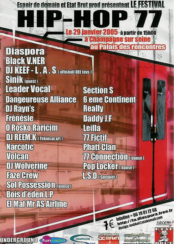 Cette scène a permis de faire émerger de nombreux artistes du 77 tels que Douma Kalash, Léonis, Karl 1, Lapis, XS, Jaguar et d’autres aux côtés de tête d’affiche prestigieuses d’envergure nationale comme Mac Tyer, Youssoupha, Sinik, Nessbeal, Niro, Ghetto Fabulous Gang, Desporuti et bien d’autre.